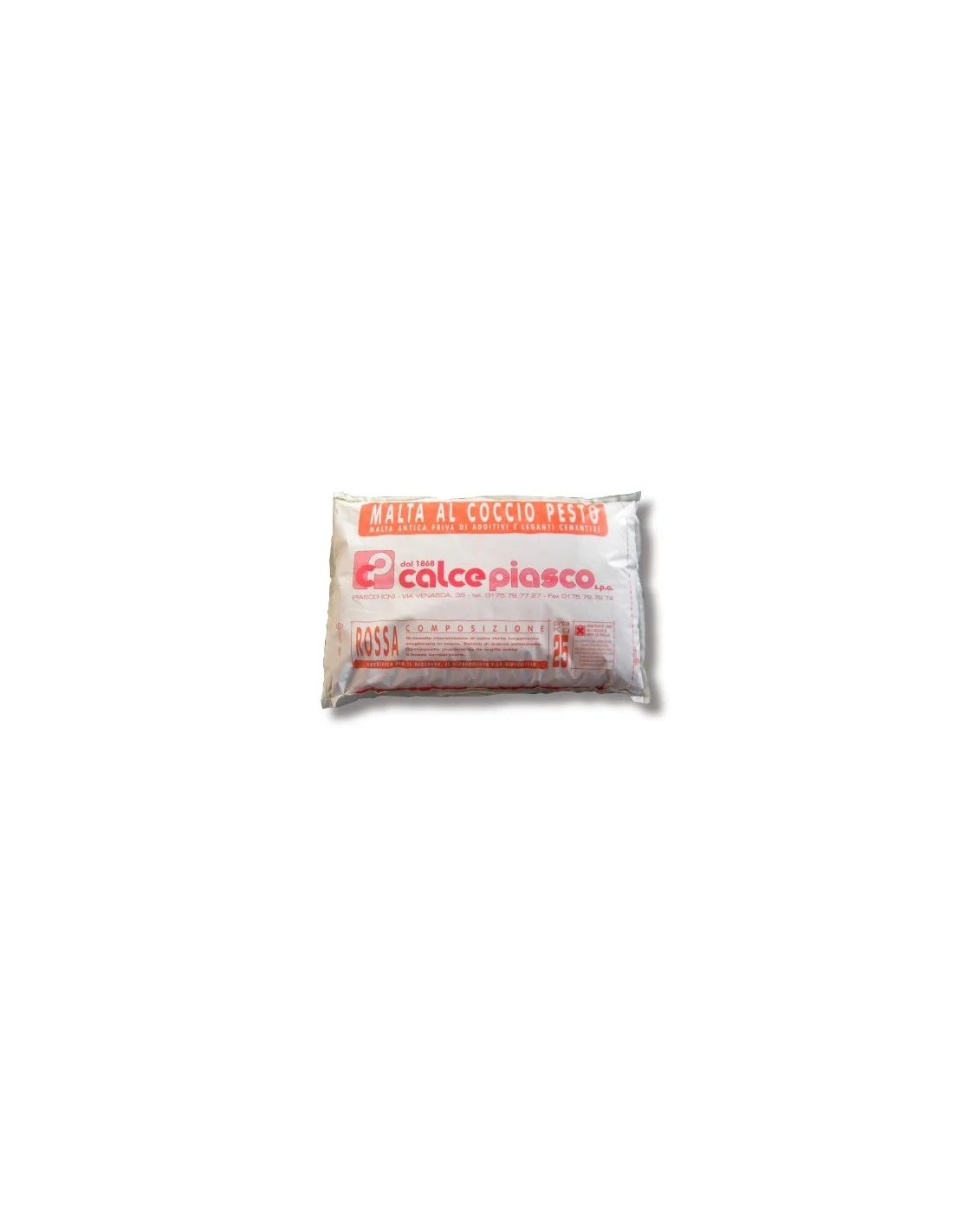 E' una malta umida predosata composta da grassello di calce forte naturale stagionata a lungo, sabbia selezionata e polvere di cocciopesto ottenuto dalla cottura e macinazione di argilla cotta a basse temperature, tra i 900 e i 1000°C, il tutto contenuto in diversi comparti del sacchetto.